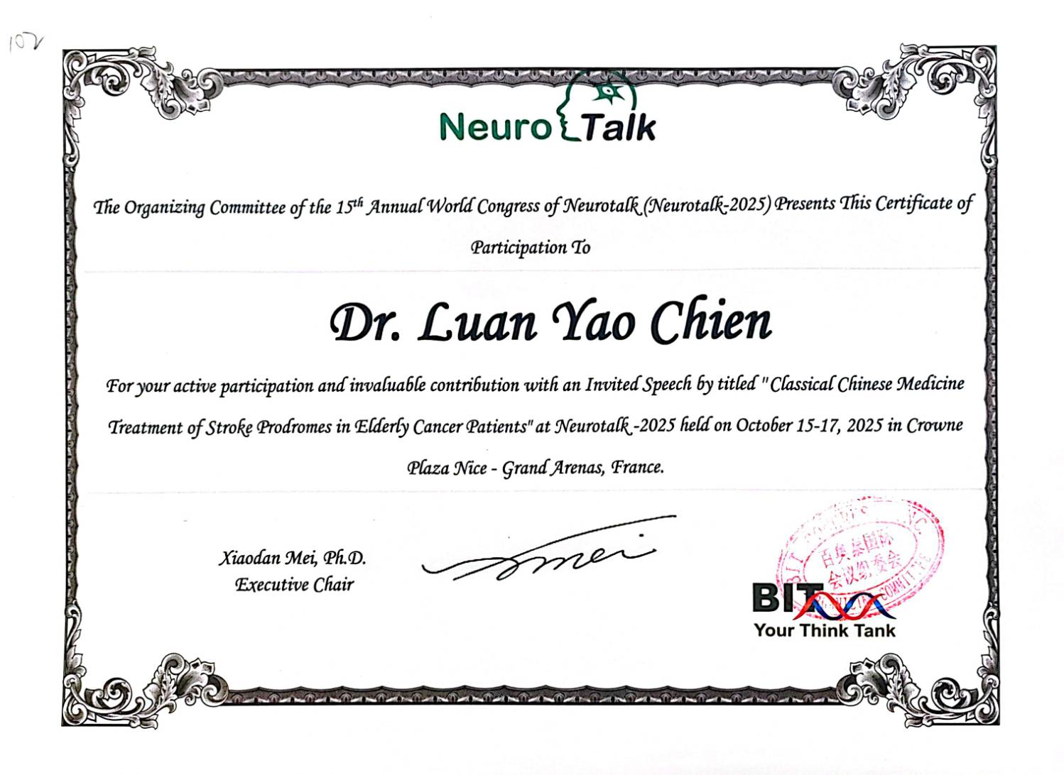 本院簡醫師於「2025世界神經論壇」中發表論文:中醫在長期帶病延年照護中的角色